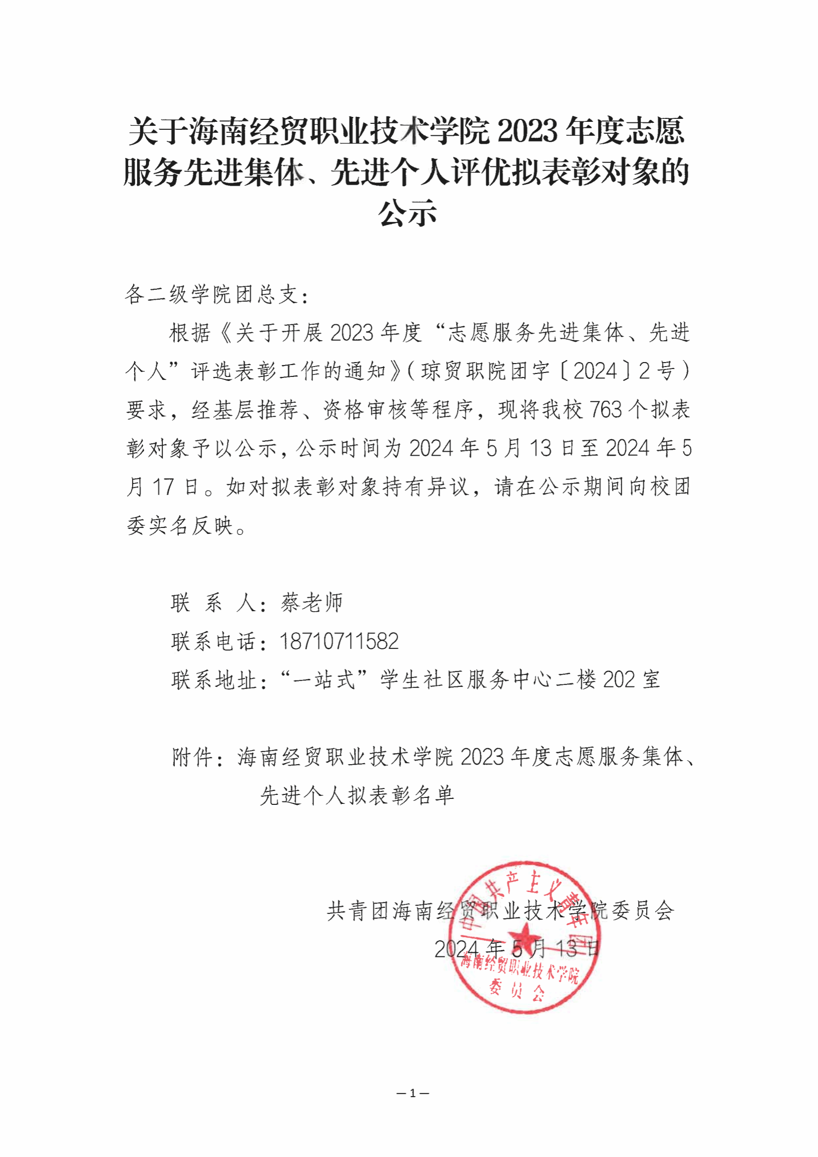 关于beats365亚洲版官网2023年度志愿服务先进集体、先进个人评优拟表彰对象的公示.docx