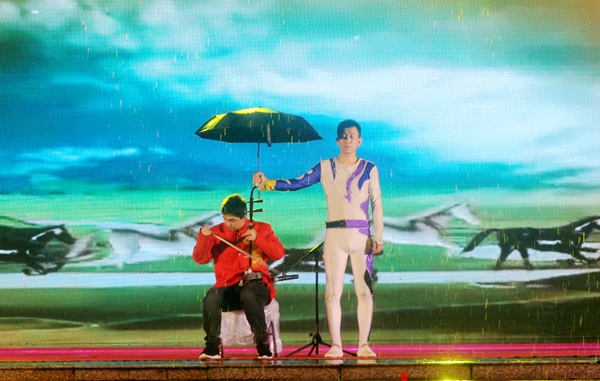 演出节目内容丰富、形式多样、催人奋进,有精彩纷呈川剧变脸,有无臂书画家的现场口书(画)展示,有聋人舞蹈演员表演的《千手观音》,更有讴歌抗疫英雄的歌舞《逆行者》《盛放的白百合》。尽管下起了大雨,但丝毫没有阻挡演员们的表演激情。他们用天赋、意志和汗水,以震撼心灵的精湛表演、独具魅力的艺术创造、自强不息的精神风貌,让现场的师生观众备受鼓舞激励,感动于演员们的自强不息,以长久不惜的掌声表达了内心的敬意。