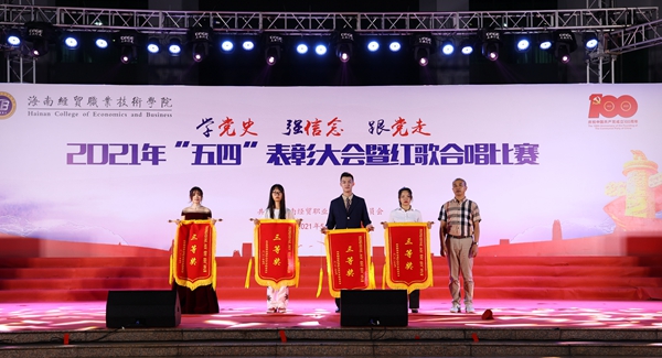 大会对黄煜程、赵罗茜、洪德丰、段亚楠、柴国鹏、黎修海、李传科、程瑞、梁汉江、赖国琪等10名“经贸自强之星”,旅游管理学院、工商管理学院、人文艺术学院3个“五四红旗团总支”,2019级旅游管理1班团支部等24个“先进团支部”,张强等5名“优秀共青团干部(教师)”,罗靓等232名“优秀共青团干部”,黄宇等521名“优秀共青团员”予以表彰。