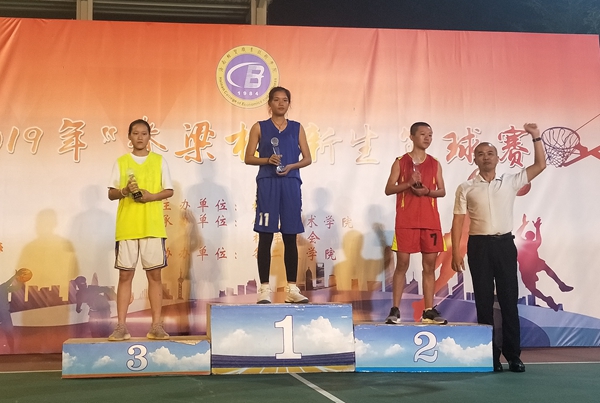 “脊梁杯”新生篮球赛女篮获奖代表队领奖