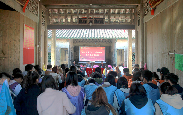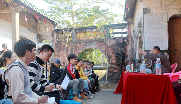 经学堂前聆听乡贤介绍村史