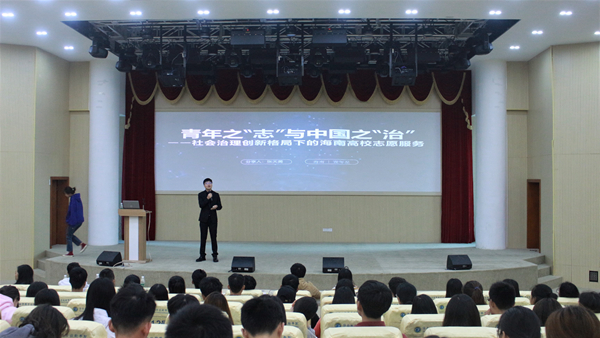 2019年12月15日,、海南青年志愿者及志愿服务咨询培训师、第二十二届“海南青年五四奖章”获得者张天勇应邀来到beats365亚洲版官网,以“青年之'志'与中国之'治'——社会治理创新格局下的海南高校志愿服务”为题,为2019年青年马克思主义者培养工程培训班的同学们授课。