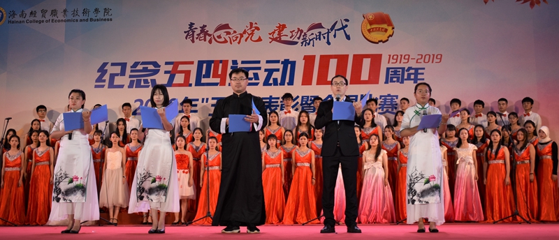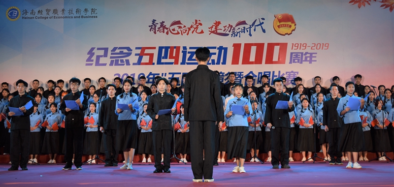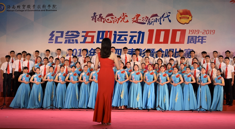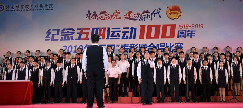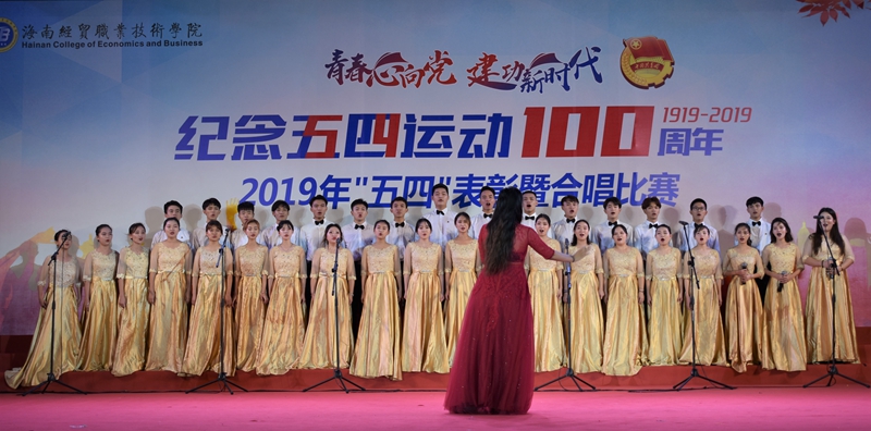 在“青春心向党 建功新时代”纪念五四运动100周年合唱比赛中,来自二级学院的6支参赛队伍为现场观众带来了一场视听盛宴。除带来必唱歌曲《光荣啊 中国共青团》外,各队还分别带来了《黄河大合唱》《中国军魂》《没有共产党就没有新中国》《我和我的祖国》《映山红》《唱得幸福落满坡》等积极向上、脍炙人口的歌曲。各参赛队伍在合唱中通过情景演绎、朗诵等创新比赛内容与形式,表达对五四先辈的崇敬之情,热情讴歌在中国共产党领导下,中华民族取得的各项成就,展示了为青春之我创造青春之中国、青春之民族而奋斗的决心。整场比赛气势恢宏,高潮迭起,感染了在场每一位师生,赢得了阵阵掌声。