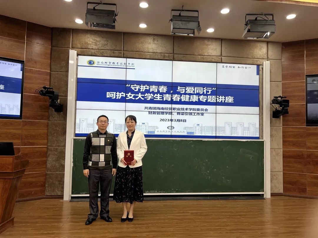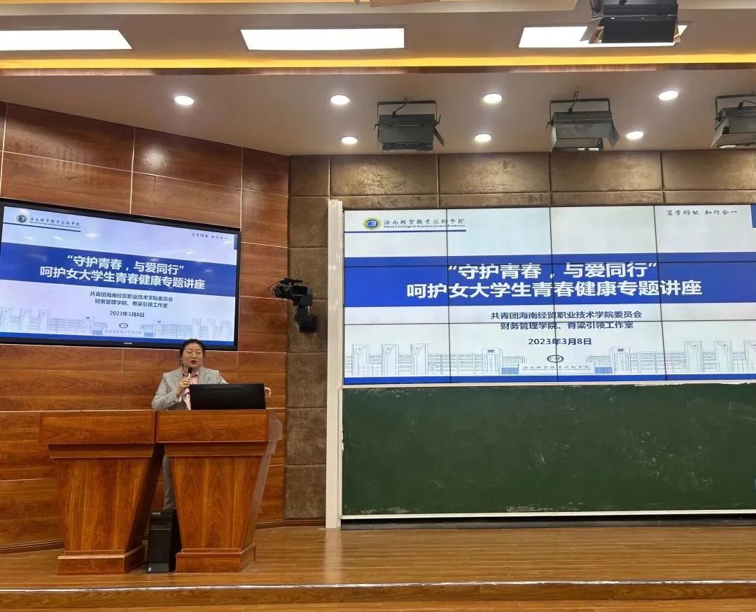 为营造良好的校园青春健康氛围,普及大学生青春健康知识,呵护女大学生身心健康,2023年3月8日下午,财务管理学院联合院团委、脊梁引领工作室举办“守护青春,与爱同行”呵护女大学生青春健康专题讲座,讲座邀请了海南医学院第一附属医院妇科负责人陈曼玲教授主讲,院团委书记张清松处长出席会议,讲座由财务管理学院党总支副书记李琰主持,财务管理学院辅导员、学生120余人聆听讲座。