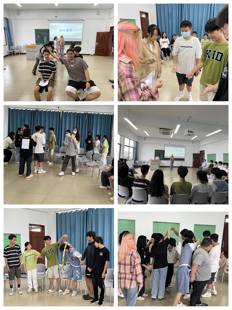 此次心理团辅由4个集体小活动组成,分别是呼啦圈大作战、流年画册、心有千千结、背后的祝福。在活动过程中,大家手拉手,齐心合力运送呼啦圈;背对背用画笔传递信息,专业技能完美展示;纵使乱成一团麻,大家牵手合作也能复原完美圆圈;匿名写下对彼此的祝福,表达平时想说却不好意思说的话。历时2个小时,同学们从一开始的拘谨害羞,到后面的沉浸体验,感受到集体活动带来的愉悦放松。