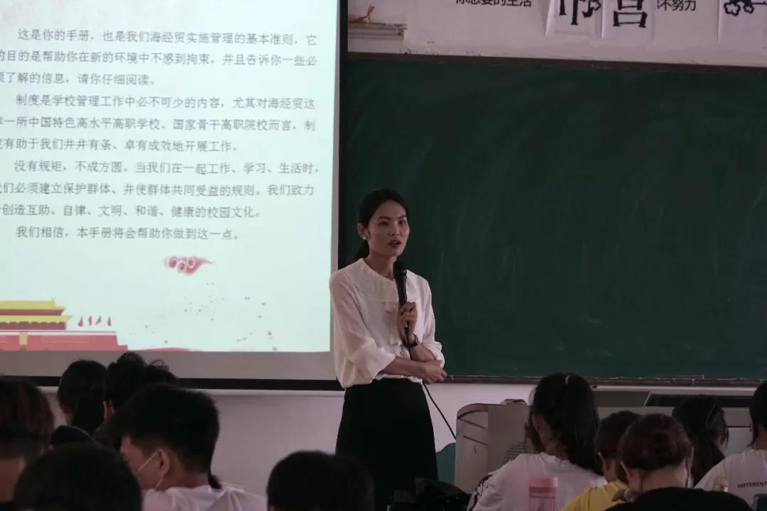 带领新生一同研读我校《学生手册》,并为其讲解了我校的校纪、校规以及学分制,教育新生要自觉遵守学校的各项规定,做文明、守纪的大学生。